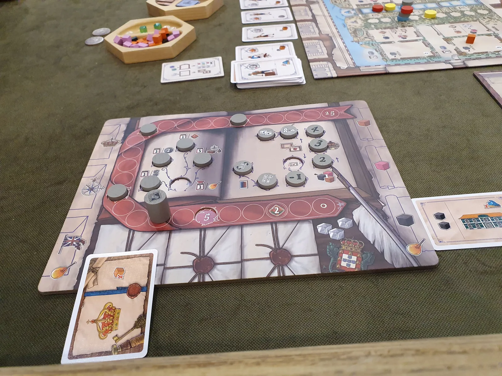 The game ends when the Napoleonic forces arrive in town, at which time the player with the most prestige wins.